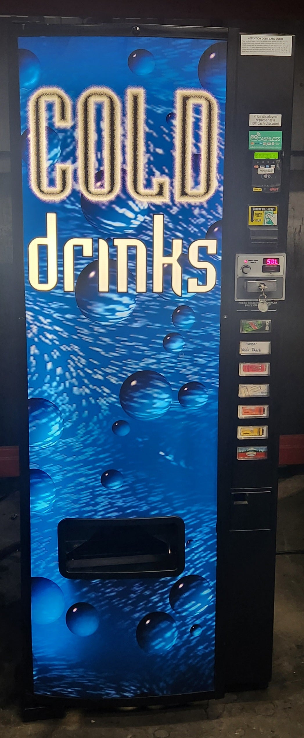 This drink machine is narrower than most which makes it a great way to get sales in areas that are limited on space. This also makes the machine ideal if you just need a few more options next to another machine. It allows you to offer a much wide variety of selections to meet the shifting demands in the current marketplace. This machine works great to dispense your classic options of bottles, cans, energy and sports drinks and so much more. It is a used machine, but it has been through a thorough cosmetic and mechanical tune-up. Everything works great. Coin mech, bill acceptor and credit card reader are included. The credit card reader will also work with tap to pay which allows you to take just about every payment option needed in todays business world. This machine is clean, ready and equipped with everything it needs to go on your location.
